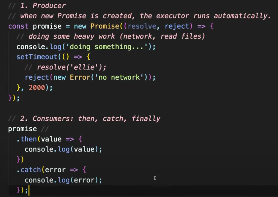 :프로미스가 만들어질때, 자동으로 실행됨.