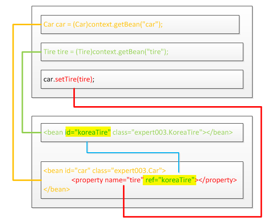 (xml파일의 property부분은 car.setTire(tire)부분을 대체함)