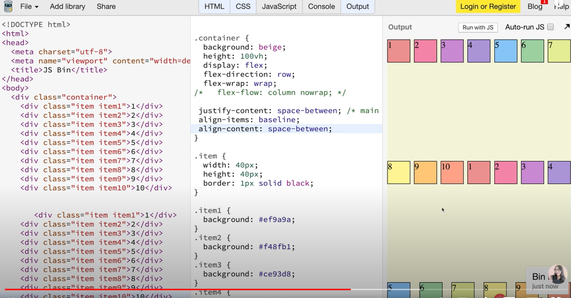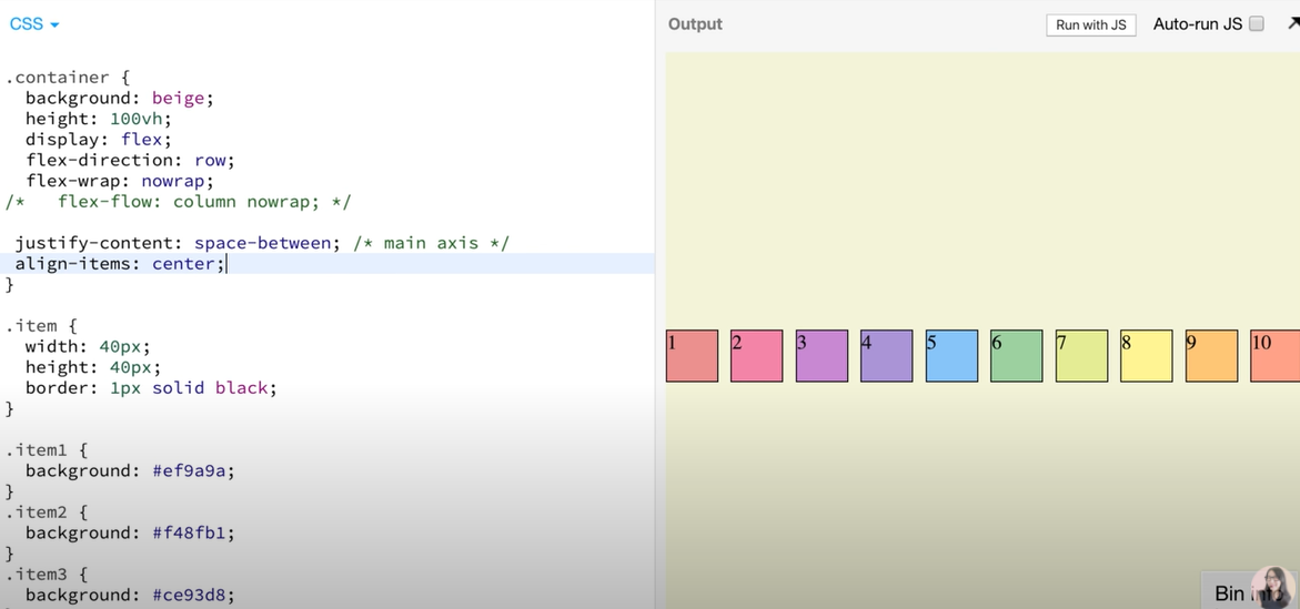| align-items : center , baseline(텍스트에맞춰 정렬) | |