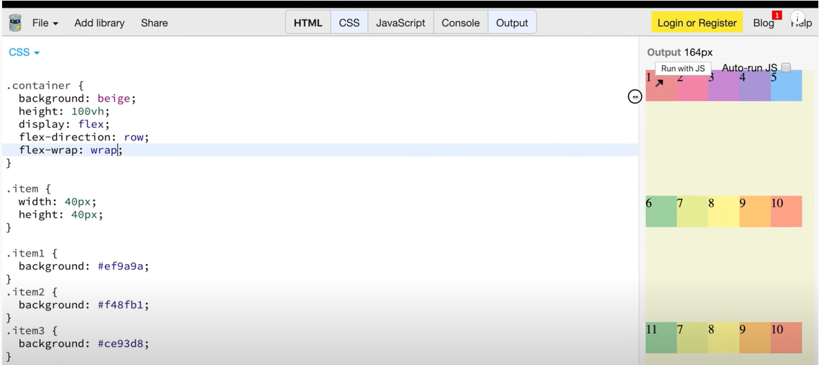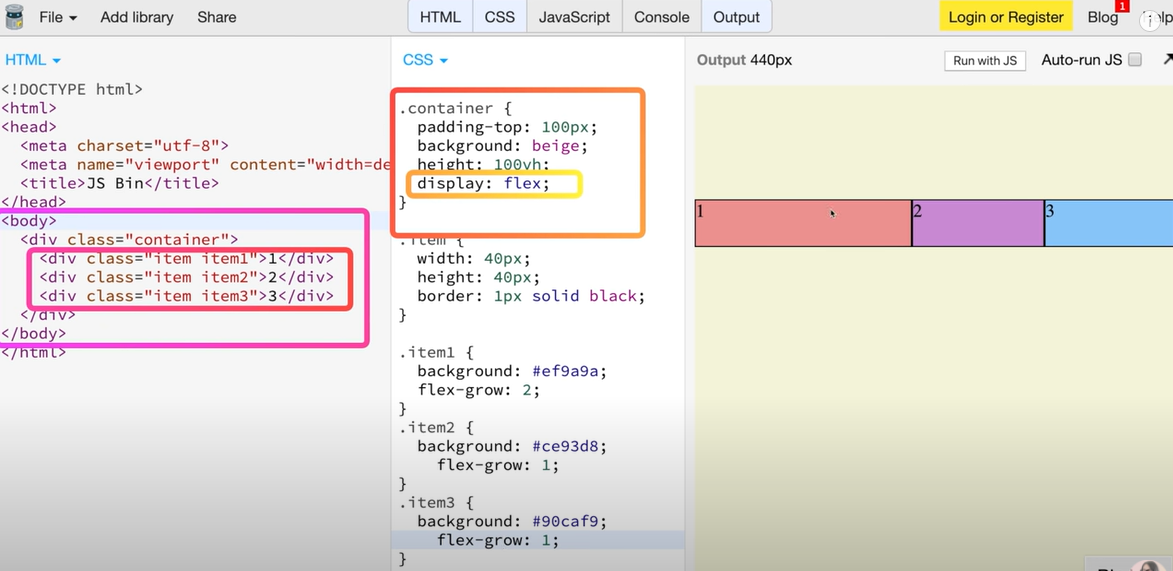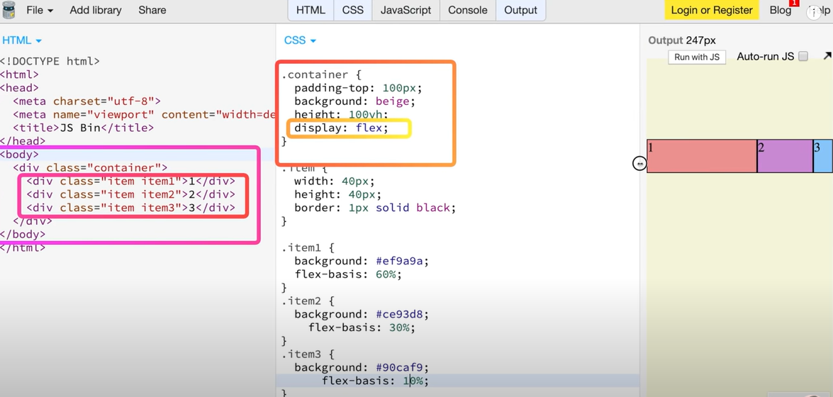 | flex-basis: auto(%로 표현) => 각각의 item들 안에 %로 표시해준다 |