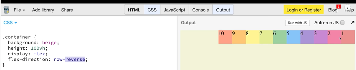 | flex-direction : row, column, row-reverse | |