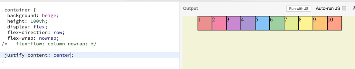| justify-content : flex-start, center, space-around, space-between | |