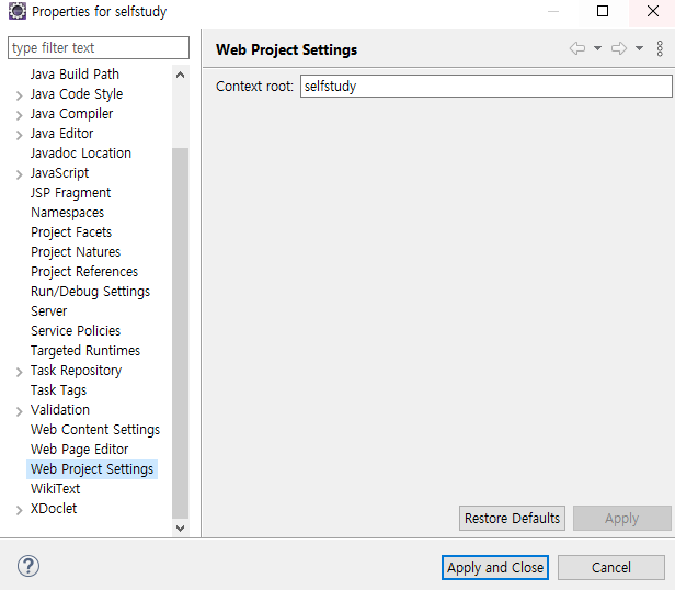 그리고 아래 서버칸에 컨텍스트명을 지워준다