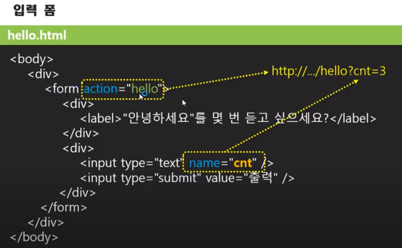 => 기본 hello요청에 3번만 반복해달라는 옵션을 넣어 요청(옵션부분=QueryString)