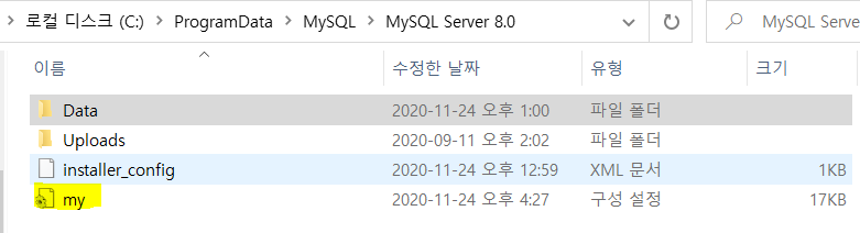 일단 my.ini 파일을 찾아야한다.