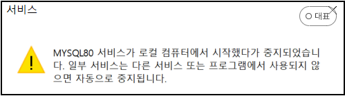 [MYSQL80 서비스가 로컬 컴퓨터에서 시작했다가 중지되었습니다.