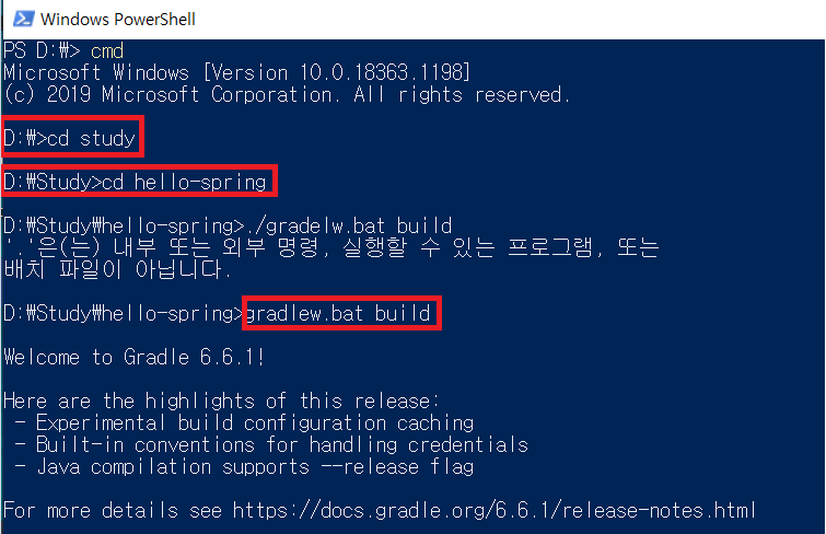 > 인텔리제이로 빌드하는것도 좋지만, 난 개발자가 될꺼니까 cmd창으로 빌드하는 습관도 들여놔야겠다