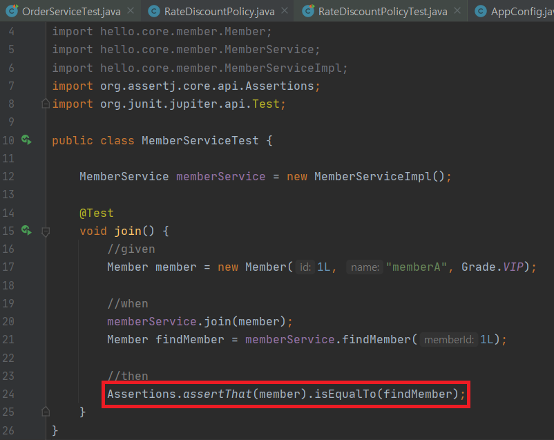: Test에서는 1)주어진환경(given) 2)시행하고자하는코드(when) 3)그 결과값(then)으로 나누어 작성한다