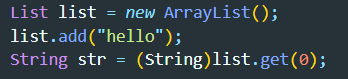 | ArrayList에는 다양한 타입이 담길 수 있음 그래서 list에 보통 최상위 타입인 object타입으로 담김 list에 저장된 값을 가져오려면 object -> String(원하는 타입)으로 형변환을 해야함. |