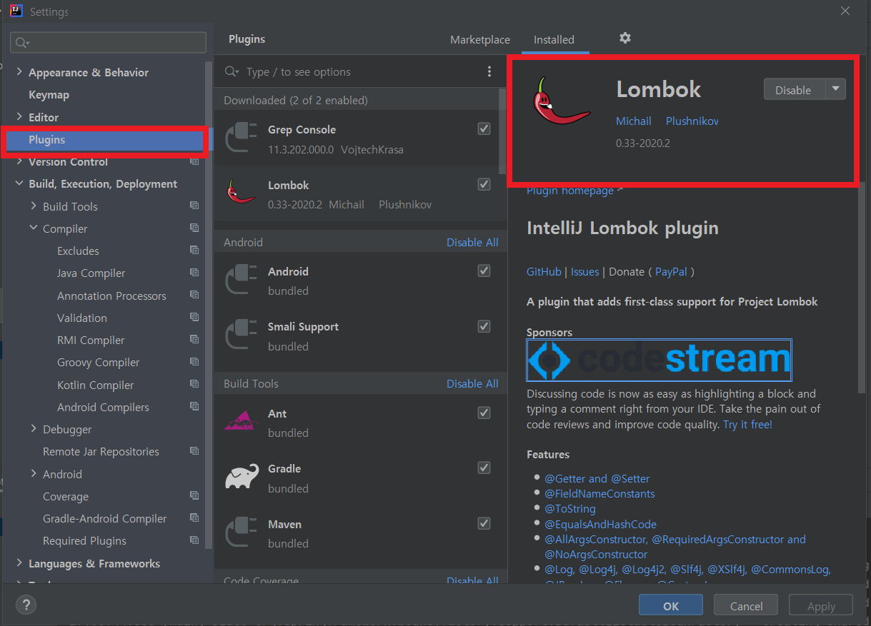 [인텔리제이에 롬복라이브러리 추가하는방법]