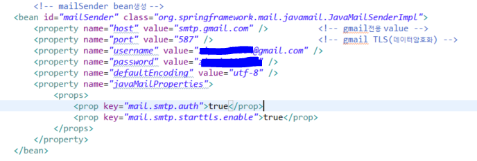 | 2. root-context : mailsender bean 생성 |