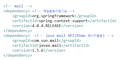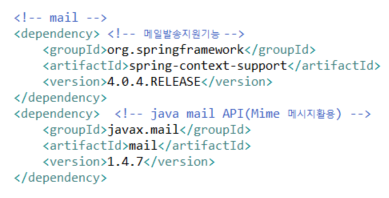 | 1. pom.xml : 메일발송,java mail api관련 추가 |