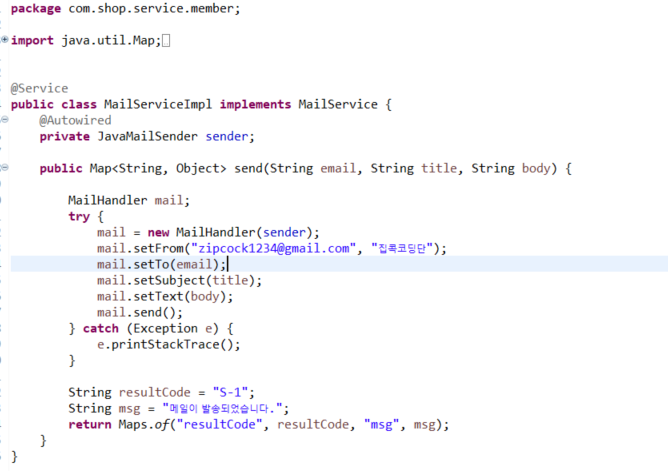 4. service.java , serviceimpl.java 생성(2가지 방법으로 메일발송가능)