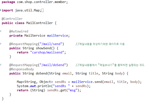 간단하게 메일관련한 내용만 기입한 컨트롤러.