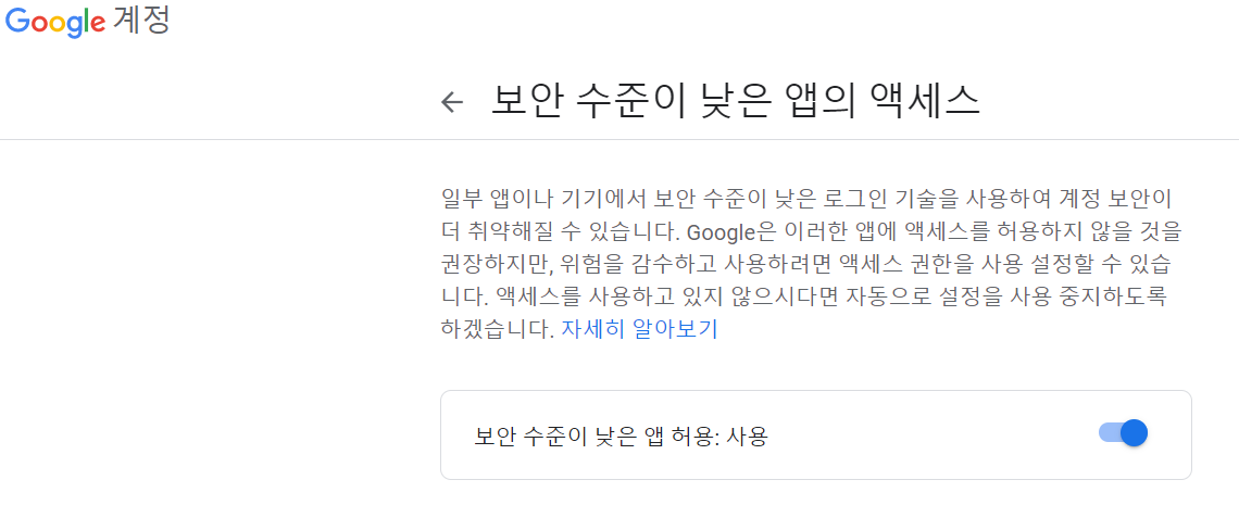 =>보안수준이 낮은 앱 허용 : 사용! ![]() |