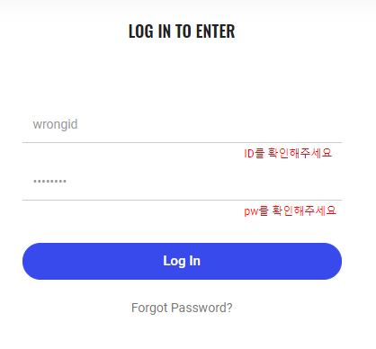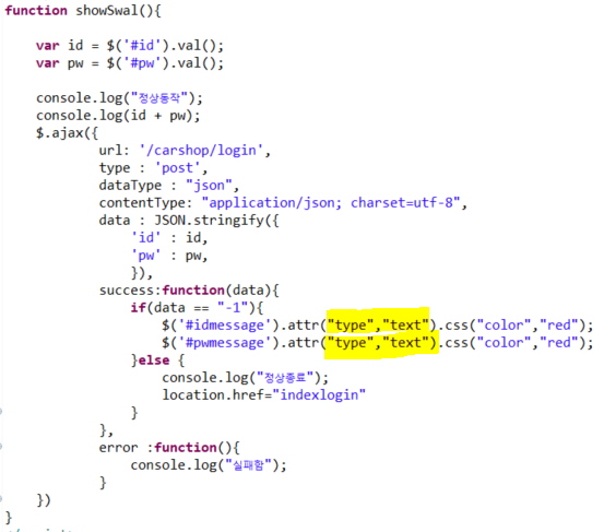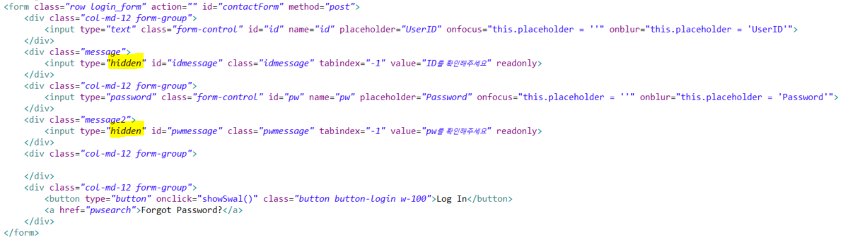 로그인정보가 틀릴경우 안내메시지를 input type="hidden" -> input type="text"로 변경