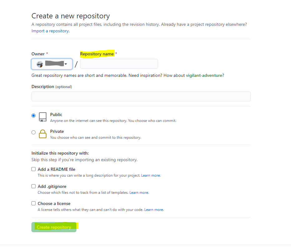 아까 그 화면이 사라지고, 아래와 같이 빈 저장소가 나온다.